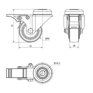 Rueda poliamida giratoria Alex diametro 50 mm. modelo 1-0125