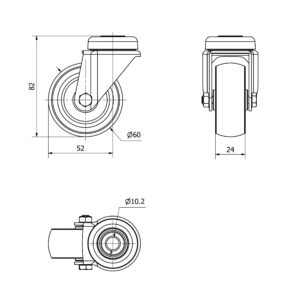 Rueda goma giratoria Alex diametro 60 mm. modelo TW0242
