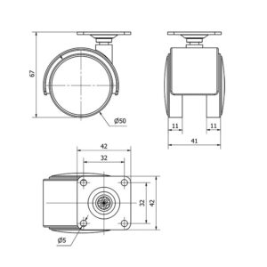 Rueda nylon-poliamida giratoria con freno Alex diametro 50 mm. modelo TW0140