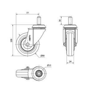 Rueda goma giratoria Alex diametro 75 mm. modelo TW0079