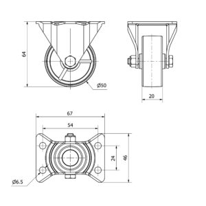Rueda nylon-poliamida fija Alex diametro 50 mm. modelo 4-0109