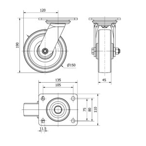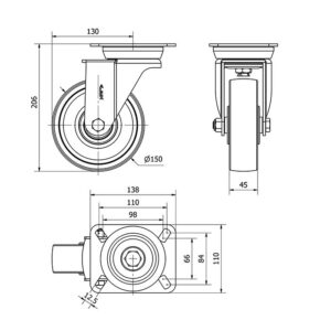 Rueda nylon-poliamida giratoria Alex diametro 150 mm. modelo 2-0217