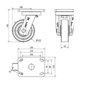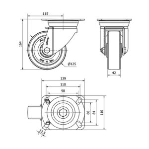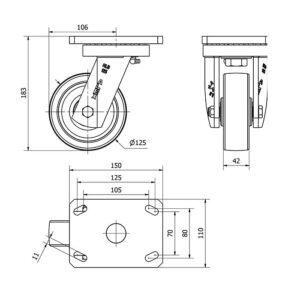 Rueda nylon-poliamida giratoria Alex diametro 125 mm. modelo 2-1800