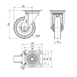 Rueda nylon-poliamida giratoria Alex diametro 150 mm. modelo 2-0022