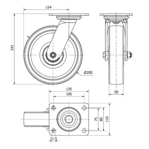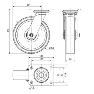 Rueda nylon-poliamida giratoria Alex diametro 200 mm. modelo 4-0815