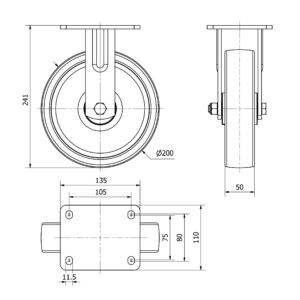 Rueda nylon-poliamida fija Alex diametro 200 mm. modelo 2-2693