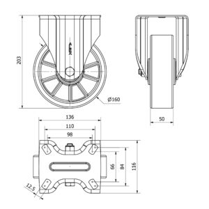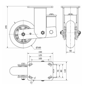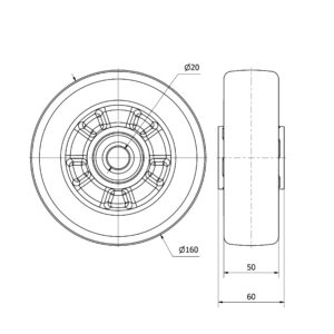 Rueda poliuretano fija Alex diametro 160 mm. modelo 2-3609