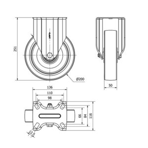 Rueda poliuretano fija Alex diametro 200 mm. modelo 2-0310