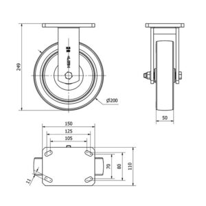 Rueda poliuretano fija Alex diametro 200 mm. modelo 2-0497