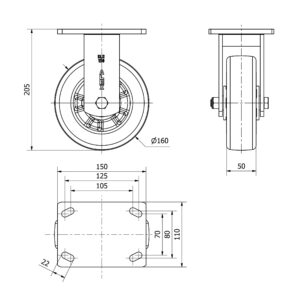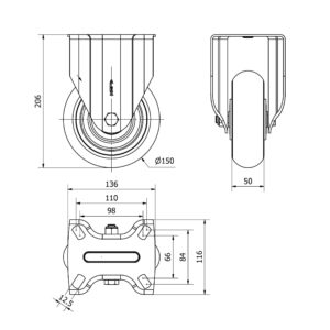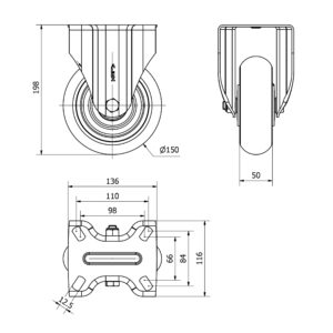 Rueda poliuretano fija Alex diametro 150 mm. modelo 2-3536