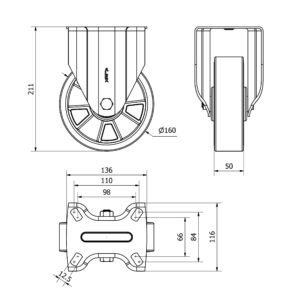 Rueda poliuretano fija Alex diametro 160 mm. modelo 2-4185