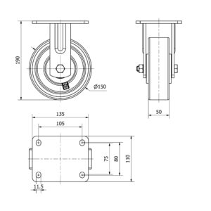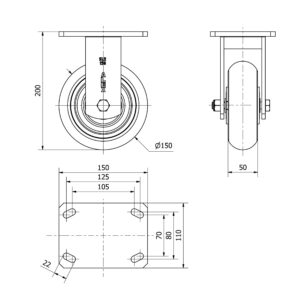 Rueda poliuretano fija Alex diametro 150 mm. modelo 2-3530