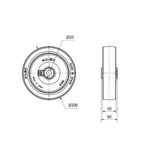 Rueda poliuretano fija Alex diametro 200 mm. modelo 2-0318