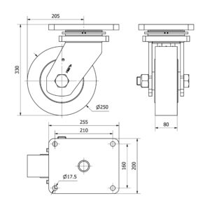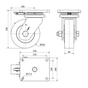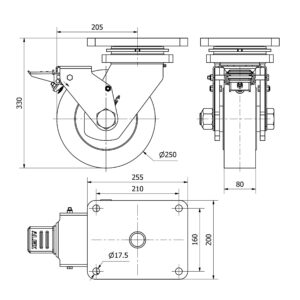 Rueda nylon giratoria con freno Alex diametro 250 mm. modelo 2-4255
