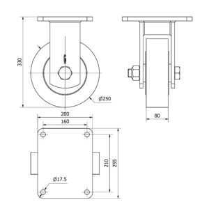 Rueda nylon fija Alex diametro 250 mm. modelo 2-3599