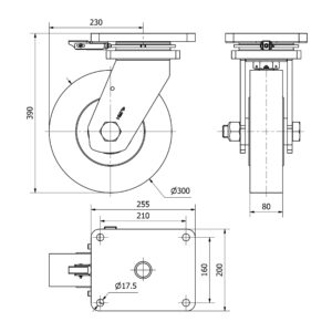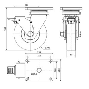 Rueda nylon giratoria con freno Alex diametro 300 mm. modelo 2-4256