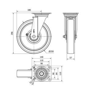 Rueda goma giratoria Alex diametro 250 mm. 2-1953