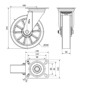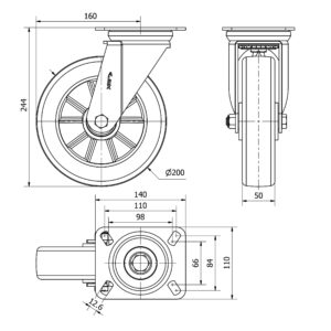Rueda resina fenolica giratoria Alex diametro 150 mm. modelo 2-0014
