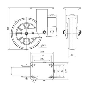Rueda poliuretano giratoria Alex diametro 200 mm. modelo 2-3853