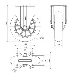Rueda poliuretano fija Alex diametro 200 mm. modelo 2-3980