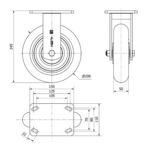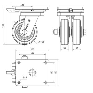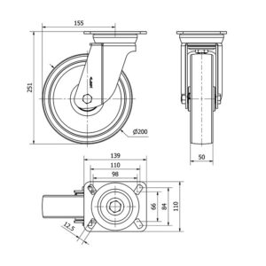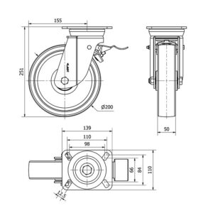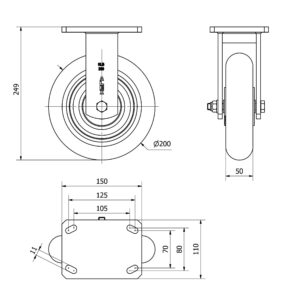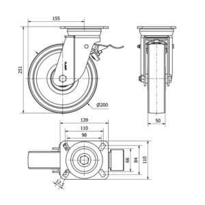 Rueda acero giratoria Alex diametro 200 mm. modelo 2-1574