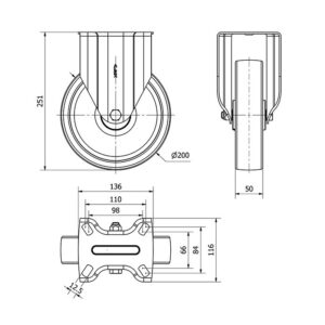 Rueda poliuretano fija Alex diametro 200 mm. modelo 2-3610