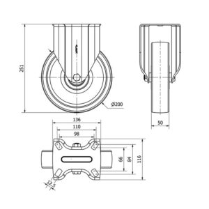 Rueda acero fija Alex diametro 200 mm. modelo 2-2897