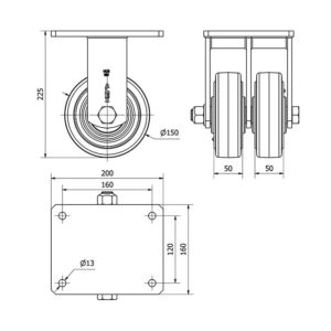 Rueda poliuretano fija Alex diametro 150 mm. modelo 2-3665
