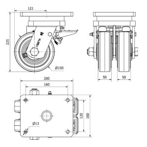 Rueda acero giratoria con freno Alex diametro 200 mm. modelo 2-2898