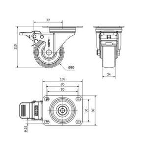 Rueda poliamix giratoria con freno Alex diametro 80 mm. 2-2341