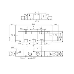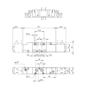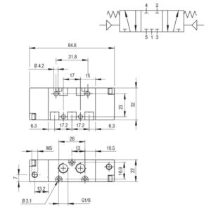 Valvula neumatica Aignep 5/3 C.C. 1/8″ monoestable retorno muelle 01VS07CC02