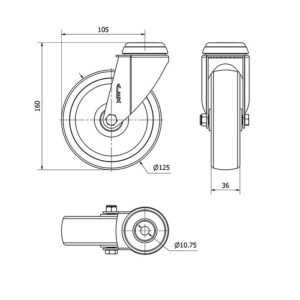Rueda poliamix giratoria Alex diametro 125 mm. modelo 2-2235