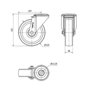 Rueda poliamix giratoria Alex diametro 125 mm. modelo 2-1414