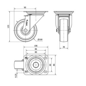 Rueda poliamix giratoria Alex diametro 100 mm. modelo 2-2333