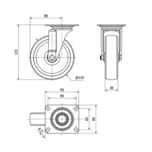 Rueda poliamix giratoria Alex diametro 125 mm. modelo 2-3088