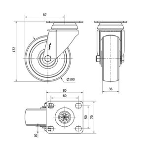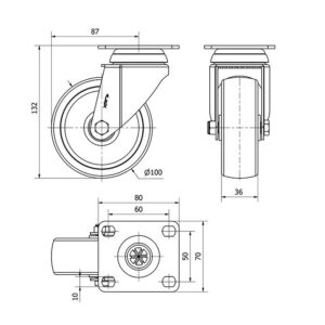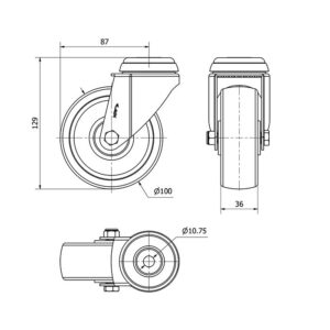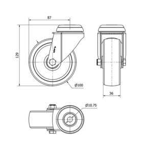 Rueda poliamix giratoria Alex diametro 100 mm. modelo TW0043