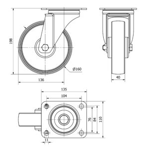 Rueda poliamix giratoria Alex diametro 160 mm. modelo TW0045