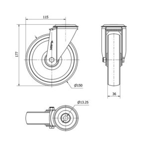 Rueda poliamix giratoria Alex diametro 150 mm. modelo 2-1415