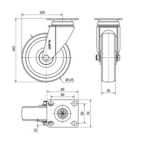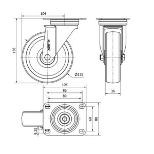 Rueda poliamix giratoria Alex diametro 125 mm. modelo 2-4804