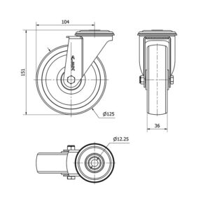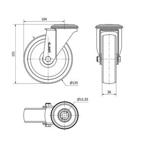 Rueda poliamix giratoria Alex diametro 125 mm. modelo TW0044