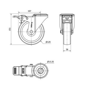 Rueda poliamix giratoria con freno Alex diametro 125 mm. modelo 2-2783