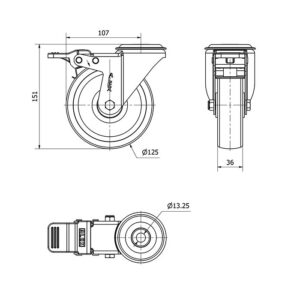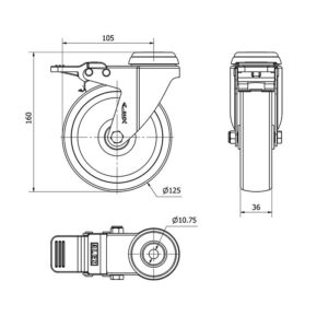 Rueda poliamix giratoria con freno Alex diametro 125 mm. modelo 2-1917
