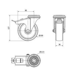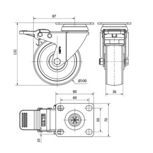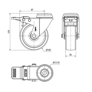 Rueda poliamix giratoria con freno Alex diametro 100 mm. modelo TW0053
