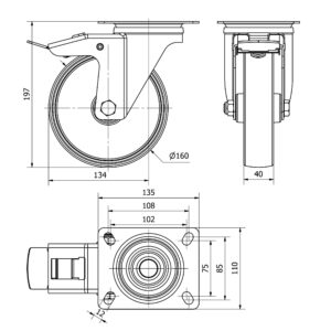 Rueda poliamix giratoria con freno Alex diametro 160 mm. modelo TW0209