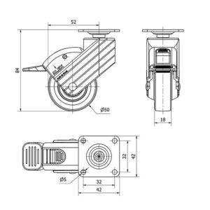 Rueda poliamix giratoria con freno Alex diametro 50 mm. modelo 1-0761