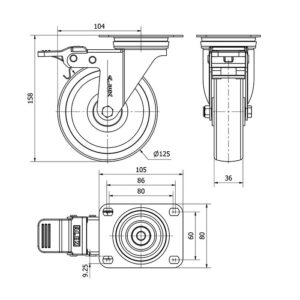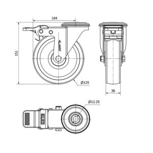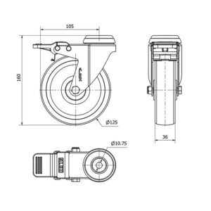 Rueda poliamix giratoria con freno Alex diametro 125 mm. modelo TW0208
