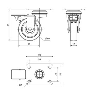 Rueda poliamix giratoria con freno Alex diametro 60 mm. modelo TW0195