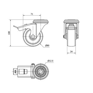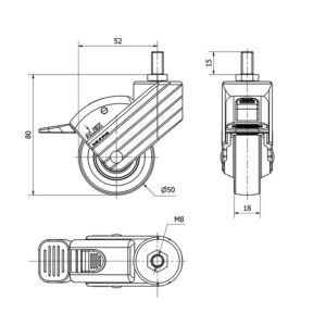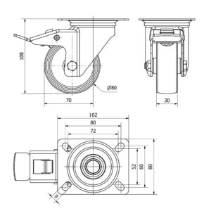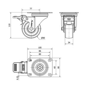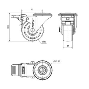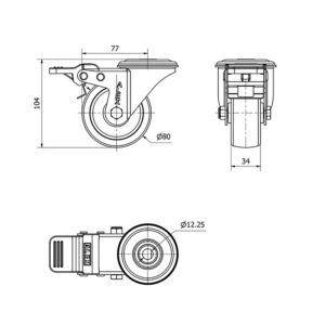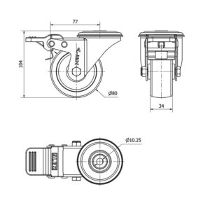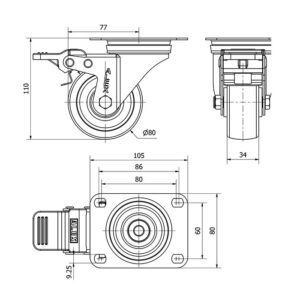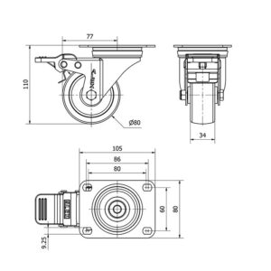 Rueda poliamix giratoria con freno Alex diametro 80 mm. modelo TW0052