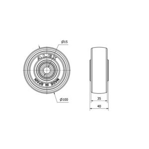 Rueda resina fenolica aro suelto Alex diametro 100 mm. modelo 2-1053