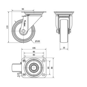 Rueda resina fenolica giratoria Alex diametro 100 mm. modelo 2-1058